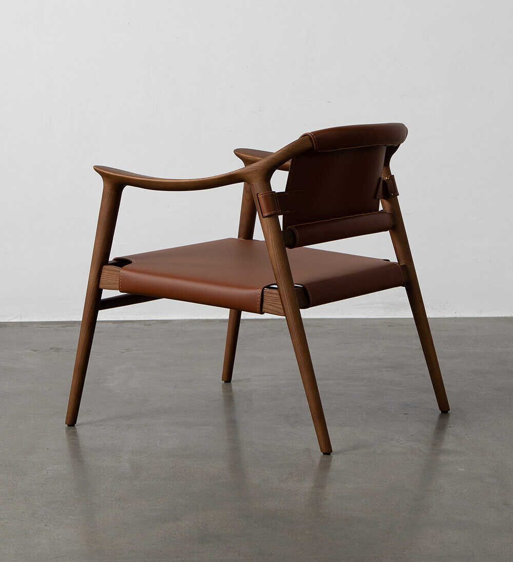 כורסא אלגנטית עם בסיס מעץ אלון מלא בגוון שחור עמוק, המעניק יציבות ונוכחות יוקרתית.