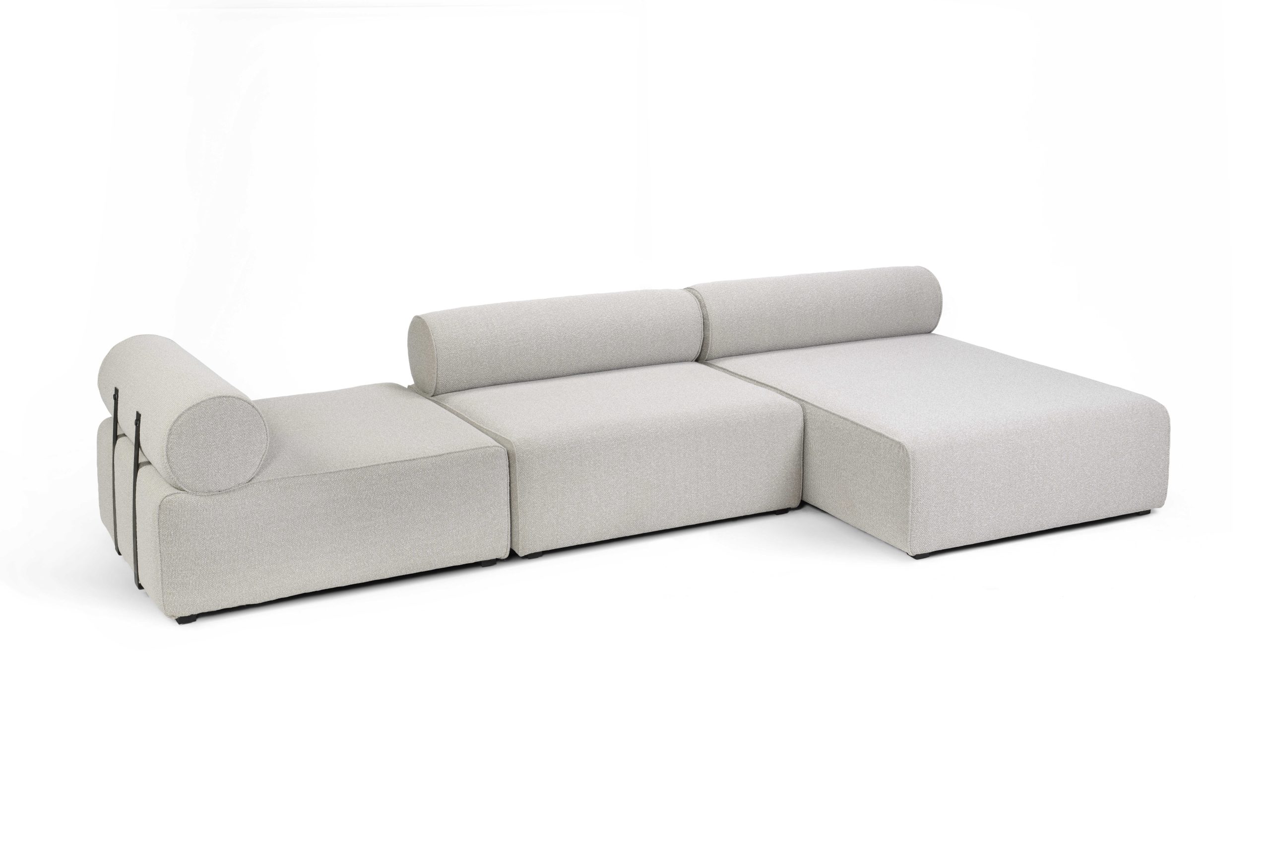 ספה מודולרית בעיצוב מודרני עם גב גלילי רך ותמיכה מתכתית המעניקה יציבות ויוקרה. פרטי גימור בהדפסת תלת-ממד, כמו מחברים גלויים ועיטורים גיאומטריים, מוסיפים מראה ייחודי. אידיאלית להתאמה אישית בחללים דינמיים וסלונים מעוצבים.